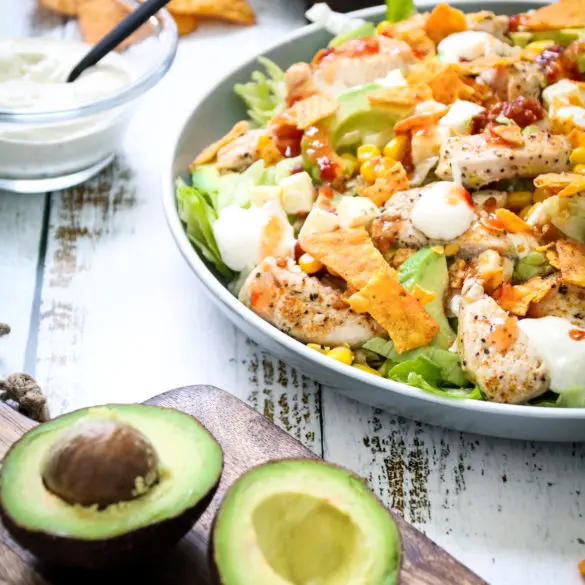 Fyrir c.a 8 árum síðan var ég vön að fá mér mexíkóskt kjúklingasalat á veitingastað hér í Reykjavík. Salatið er hætt á matseðlinum hjá þeim en ég hef oft gert það sjálf heima og tekist vel til.