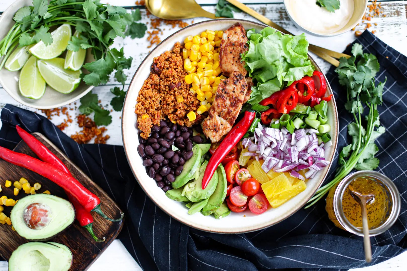 Hér er afar góð og fersk mexíkóskál sem er stútfull af vítamínum, hollri fitu og próteini og svo svo bragðgóð líka.