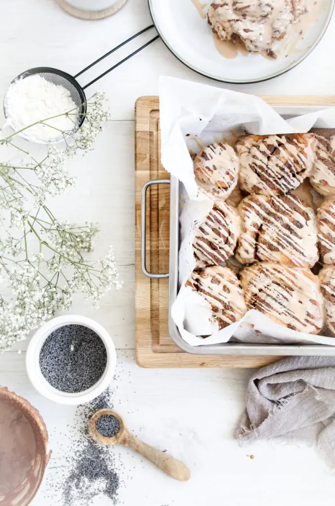 Rapadura hrásykurinn hefur djúpt karamellukennt bragð og er það sætur að maður þarf að nota minna af honum. Svo er það sem mér finnst allra best, valmúga fræin eins og er oft notað í ostaslaufur.