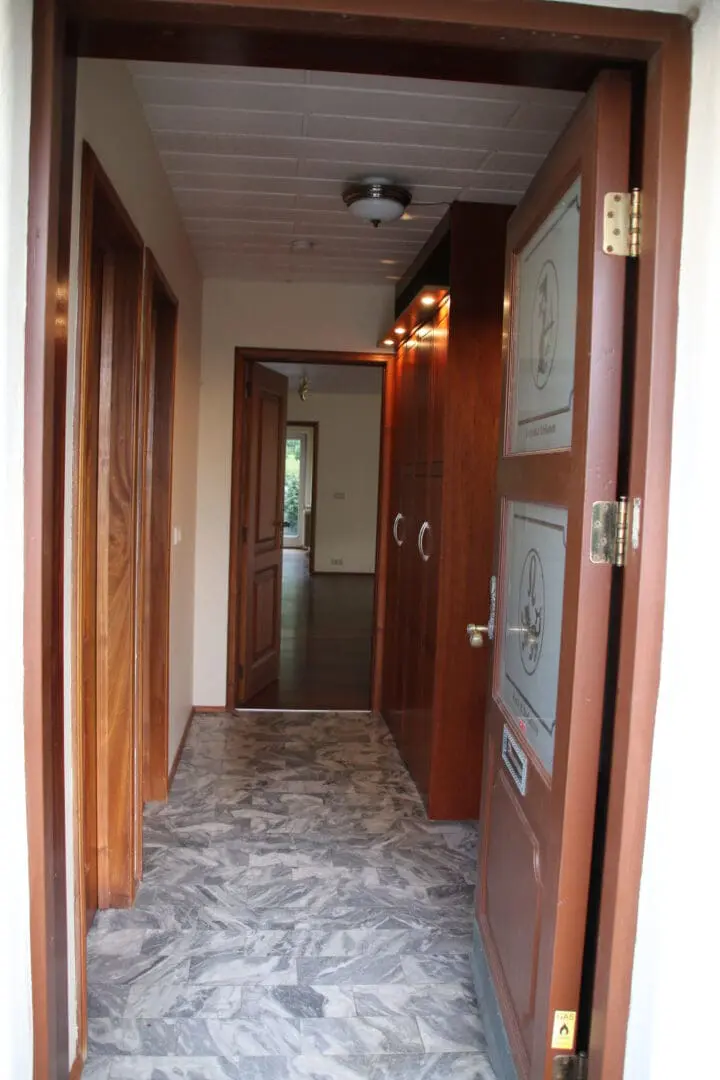 Hér sést úr forstofunni inn í húsið, en hurðarveggurinn og forstofuskápurinn voru fjarlægðir.