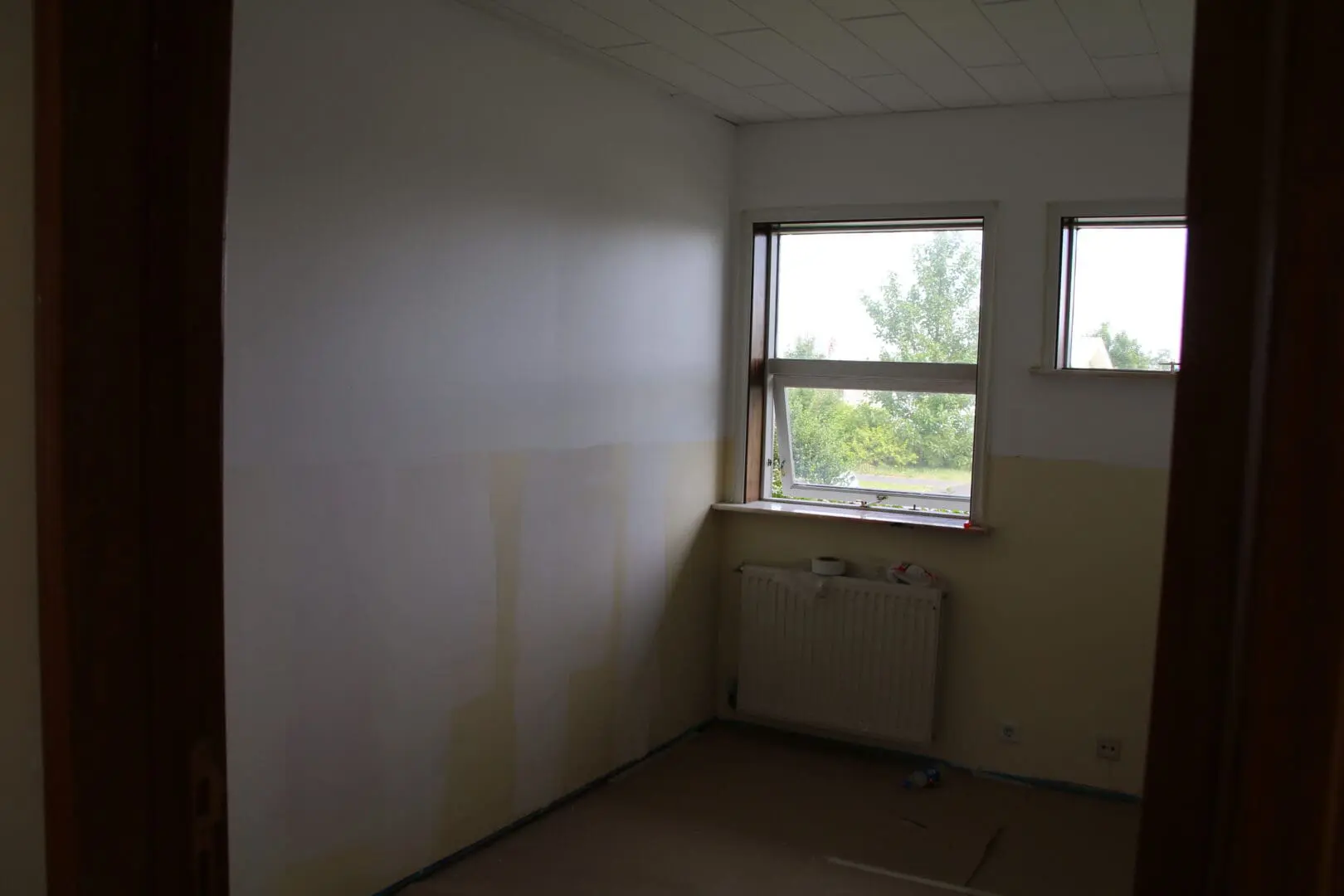 Í þessu herbergi færðum við hurðaropið úr stofunni yfir í forstofuna þar sem forstofuskápurinn hafði verið áður.