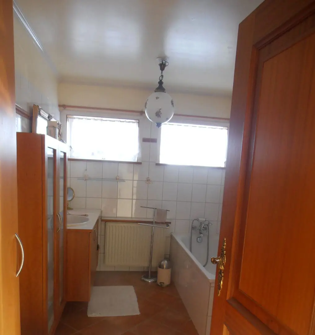 Stóra baðherbergið var alveg rifið og öllu hent út. Gólfhiti lagður, nýtt baðkar, innréttingar, vegg og gólfefni lagt og nýr sturtuklefi byggður.