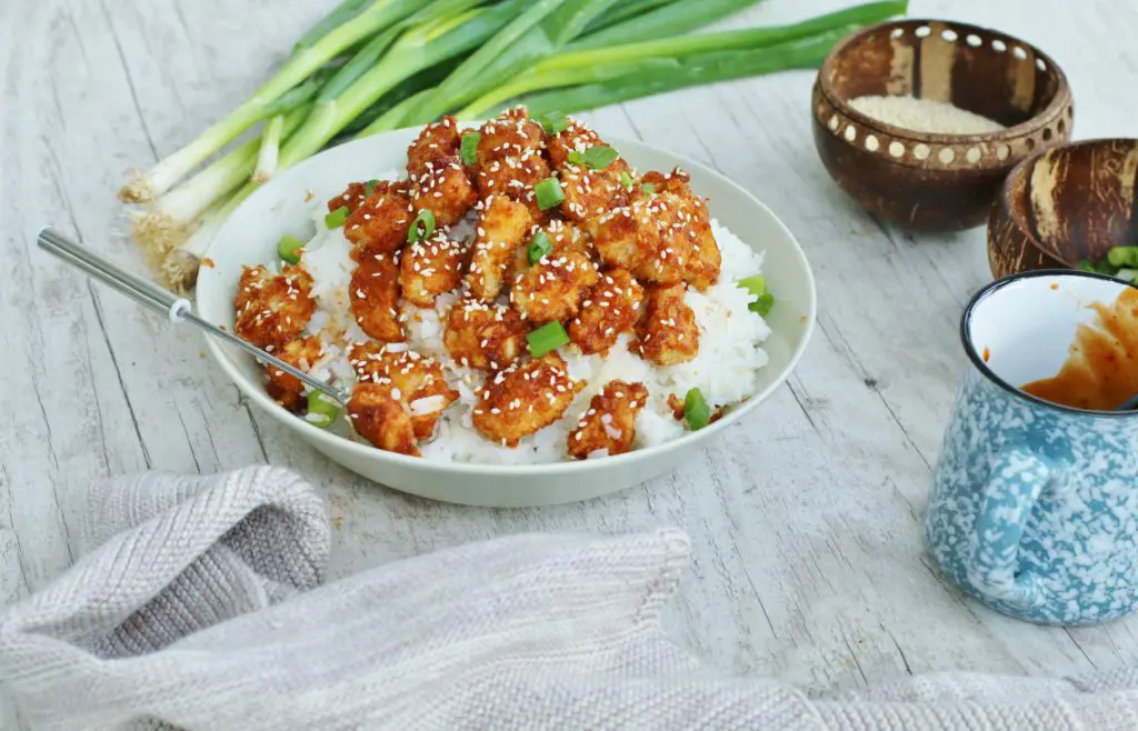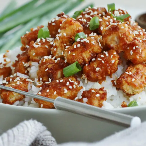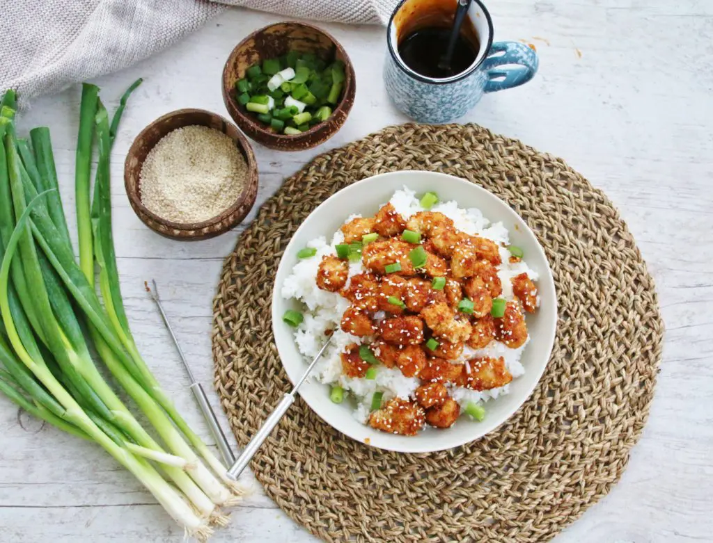 5. Setjið svo bollurnar ofan á grjóninn og skreytið með sesamfræjum og vorlauk, en það combó gefur réttinum afar gott bragð