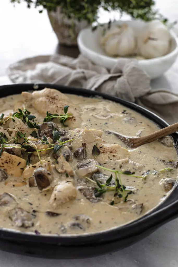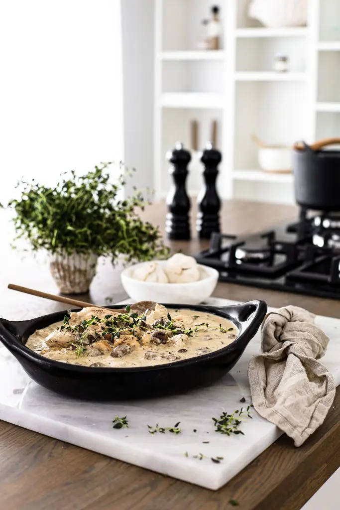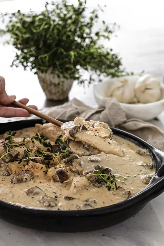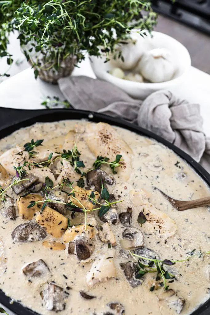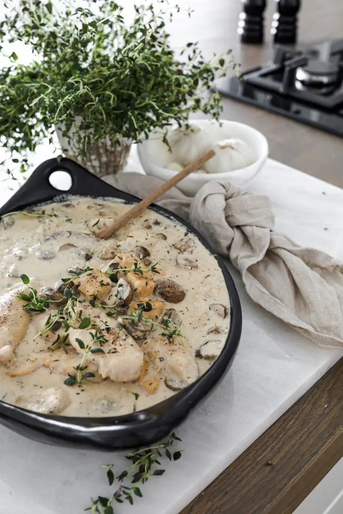 - Þegar rétturinn er tekinn út er gott að hræra aðeins í honum þar til allt er vel blandað saman og sósan verður þykk og góð