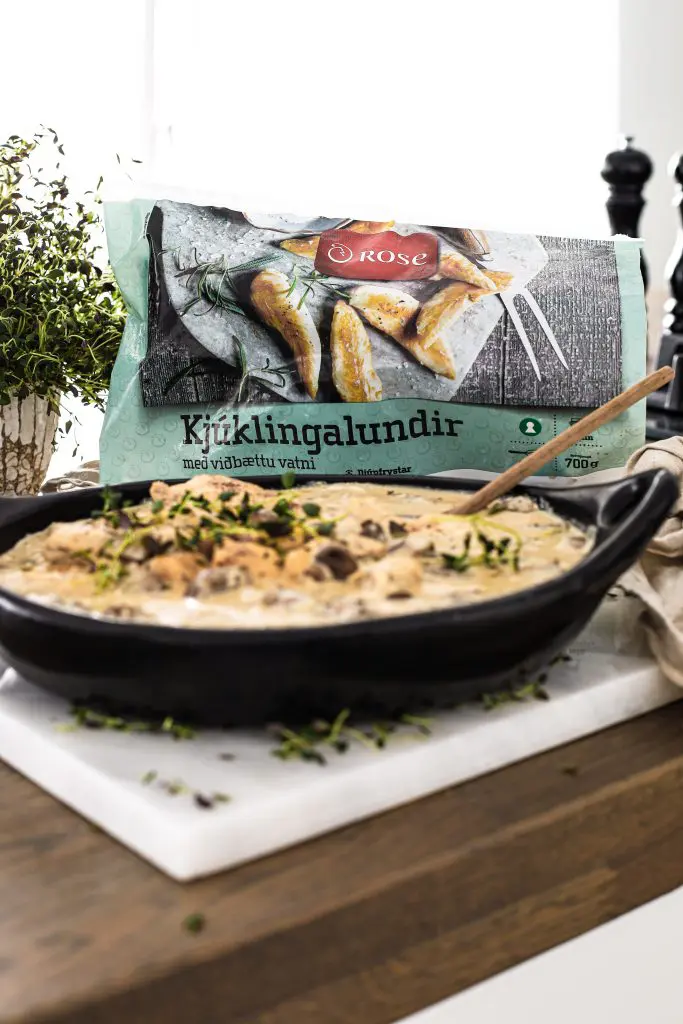 Hér notaðist ég við Rose Poultry kjúklingalundir, en ég á yfirleitt alltaf til poka af Rose Poultry kjúkling í frystir.