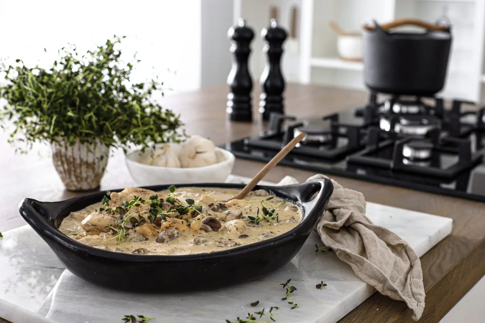 - Þegar rétturinn er tekinn út er gott að hræra aðeins í honum þar til allt er vel blandað saman og sósan verður þykk og góð