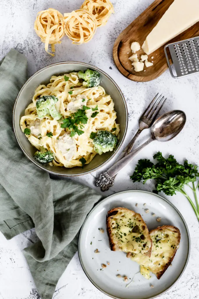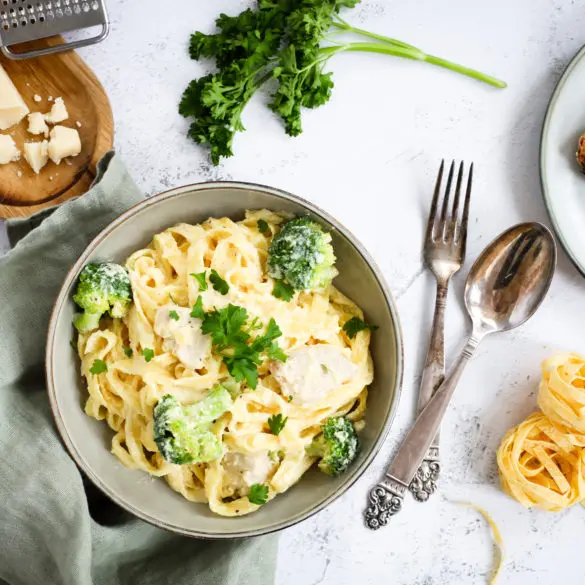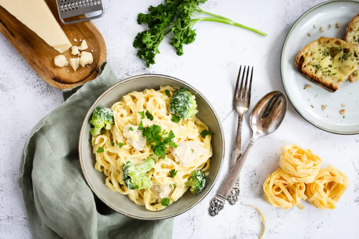 Alfredo pasta er vinsæl Ítölsk uppskrift þar sem flötu pasta eins og fettuccine eða tagliatelle er blandað í sósu þar sem uppistaðan er smjör og parmesan.