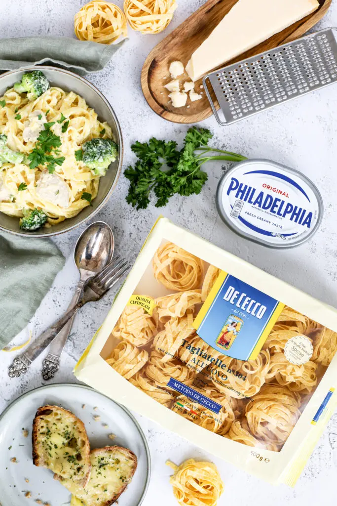 Galdurinn við að fá enn mýkri og bragðbetri sósu er að nota rjómaost í hana líka en hér ákvað ég að notast við eggjapasta frá DeCecco.