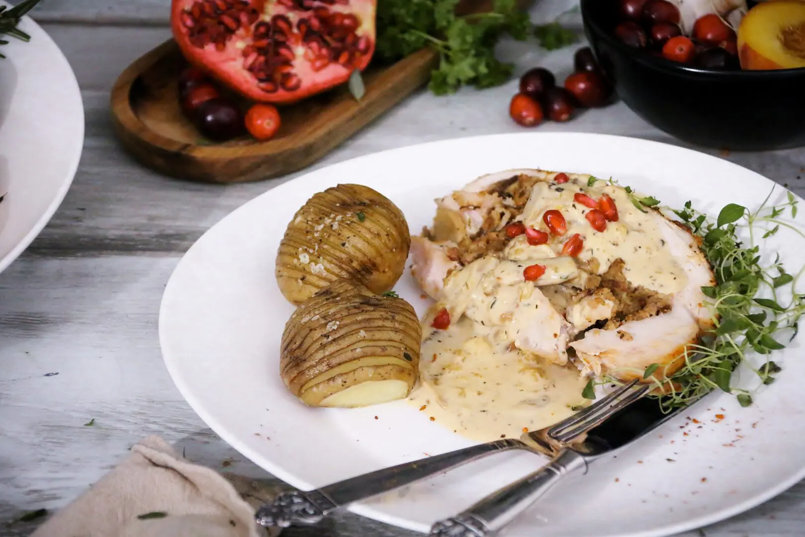 Sósan fer afar vel með kalkún og villibráð. Það eina sem þarf að gera er að skipta út soðkraftinum. Þ.e.a.s að setja kalkúnakraft ef hún er höfð með kalkún eða villibráðarkraft ef hún er borin fram með villibráð.