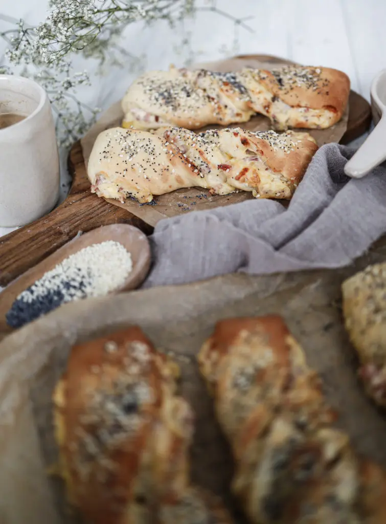 Mér finnst alltaf ostaslaufur frekar bragðlausar og langar svo til að finnast þær góðar. Ég ákvað því að taka til minna ráða og gera uppskrift af ostaslaufum sem bragð er af.