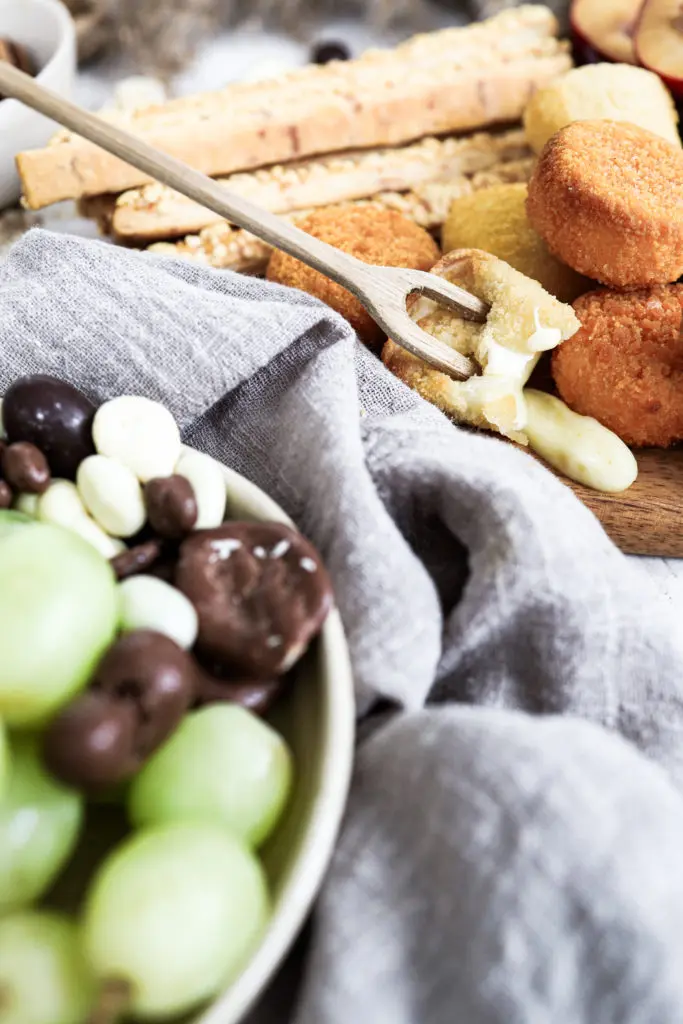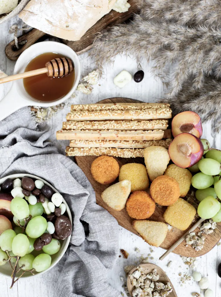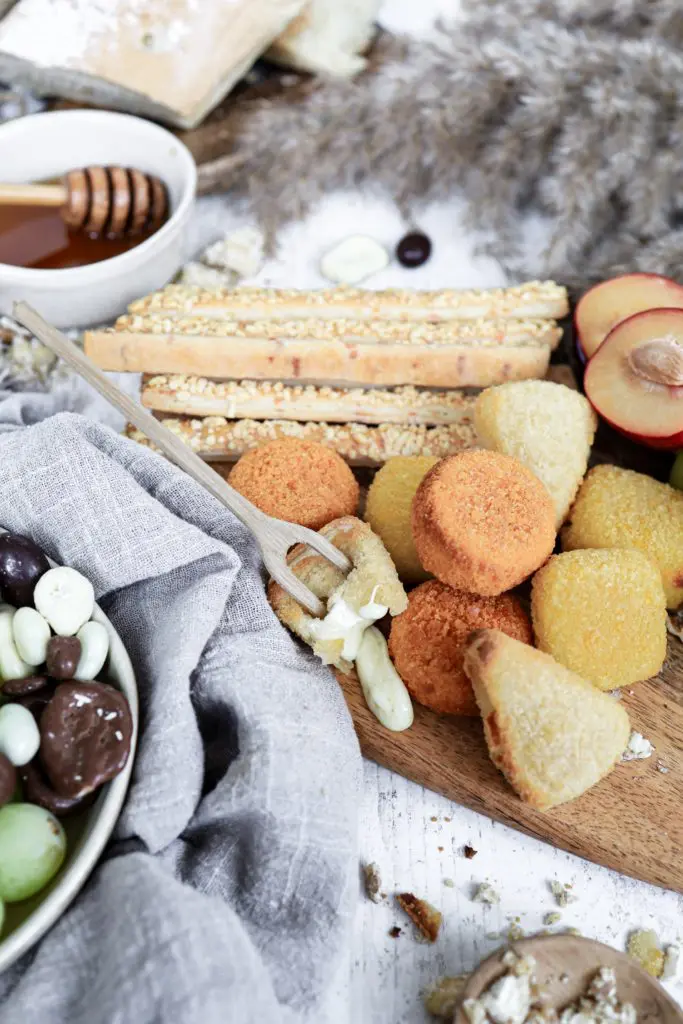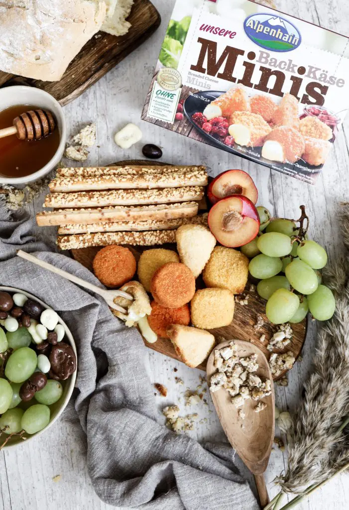 Með mini ostunum mæli ég með þeim á bakka með kexi, ávöxtum, sultu og einhverju smá sætu eins og súkkulaðihúðuðum hnetum og rúsínum og þess vegna góðum kryddpylsum.