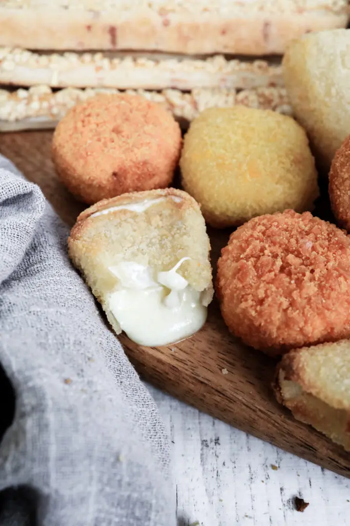 Það er bæði hægt að fá 4 stk af djúpsteiktum camembert í pakka eða 9 stk af blönduðum bitum úr Gouda, Brie og Camembert ostum en ég var með bæði í þetta sinn.