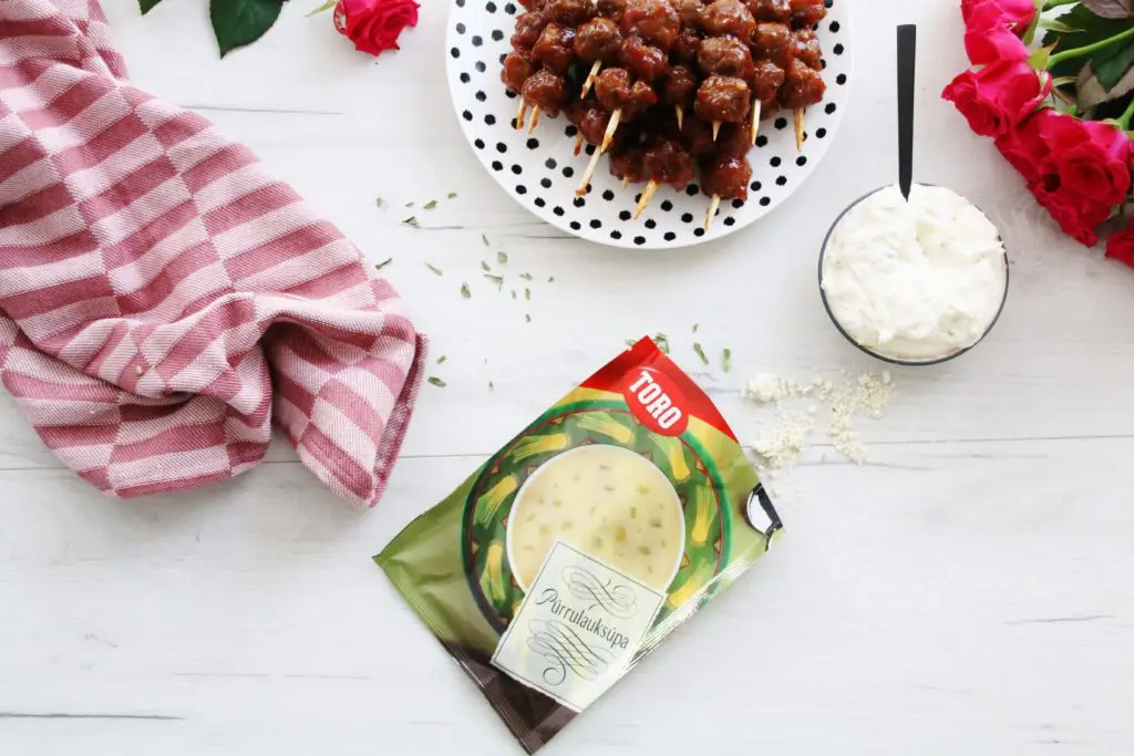 Leynihráefnið hér er púrrulaukssúpa frá Toro, en hún gefur bollunum ofboðslega gott bragð og einnig sósunni sem borin er fram með bollunum. Dásamleg hvít og silkimjúk grísk jógúrtsósa sem tónar vel með bollunum sem ídýfa.