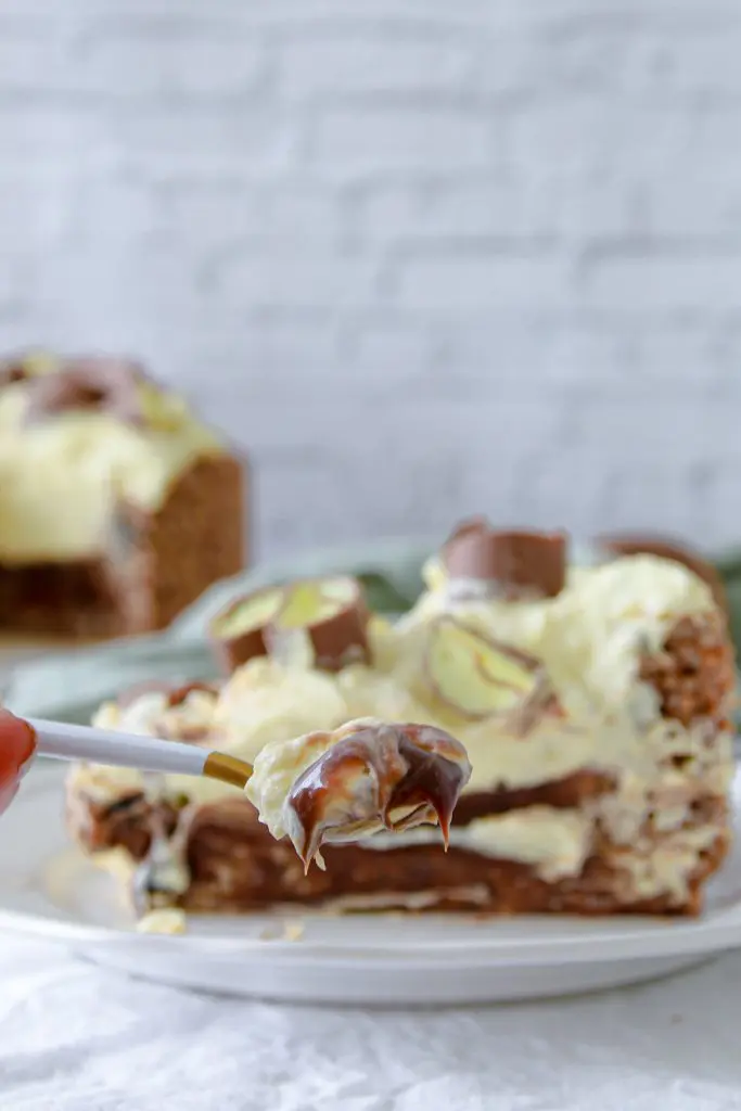 - Mér finnst gott að setja kökuna í frystir í allavega hálftíma áður en hún er borin fram en finnt langbest að bera hana fram eins og eftir 1-2 klst jafnvel lengur úr frystinum