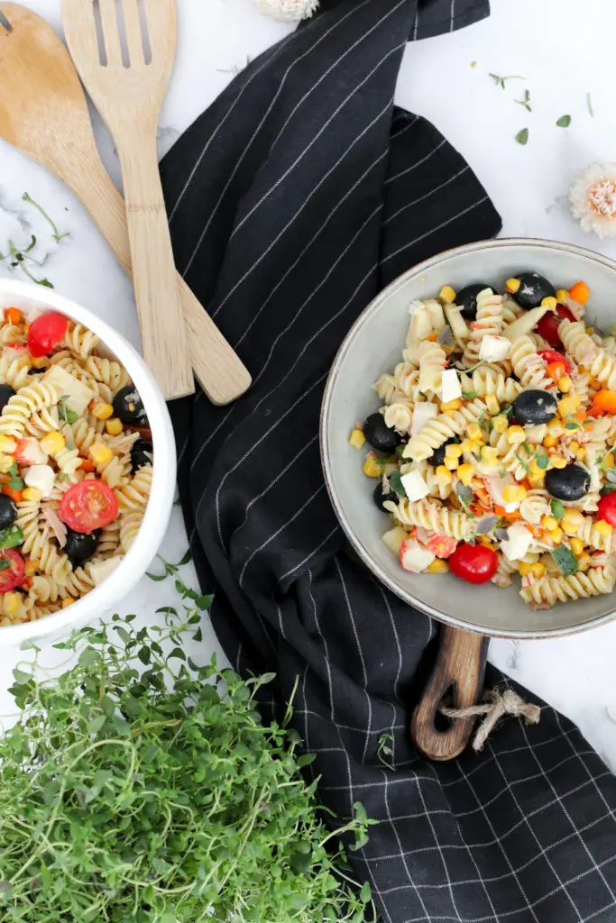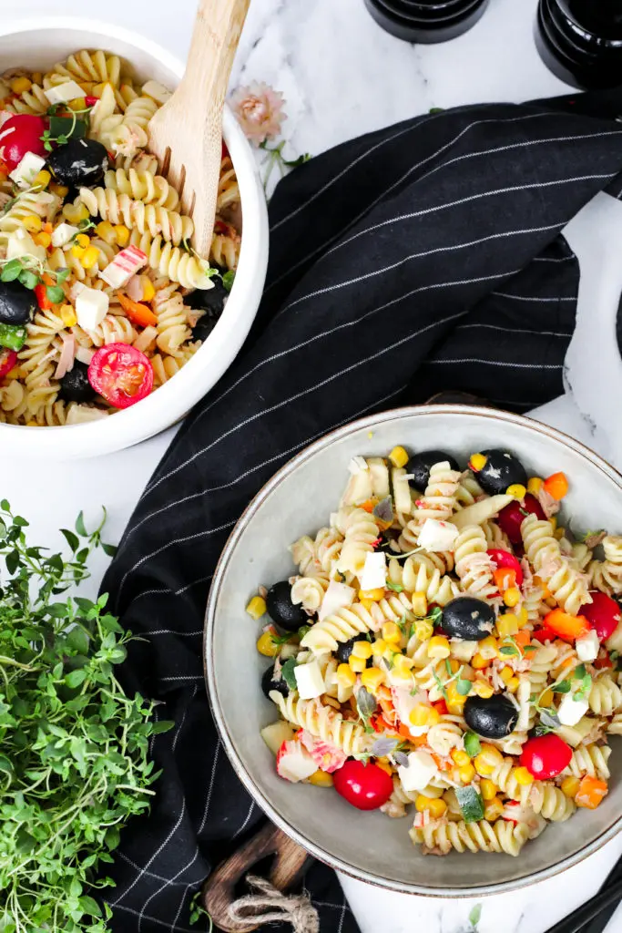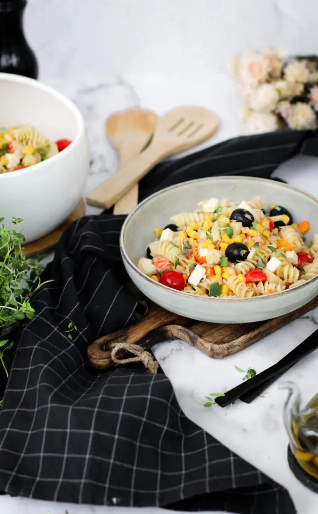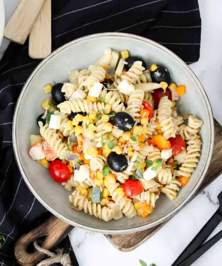 Kalt pastasalat er eitthvað sem margir mættu gera mikið oftar, enda er það ótrúlega sniðugt til að hafa með í nesti eða til að eiga í ísskáp þegar hungur seðjar að og manni vantar eitthvað snöggt.