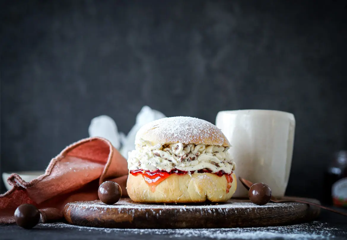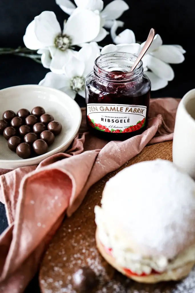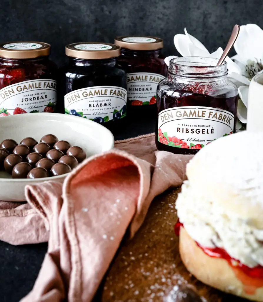 Einnig er hægt að nota jarðarberjasultu, hinberja eða bláberja frá Den Gamle Fabrik á bollurnar.