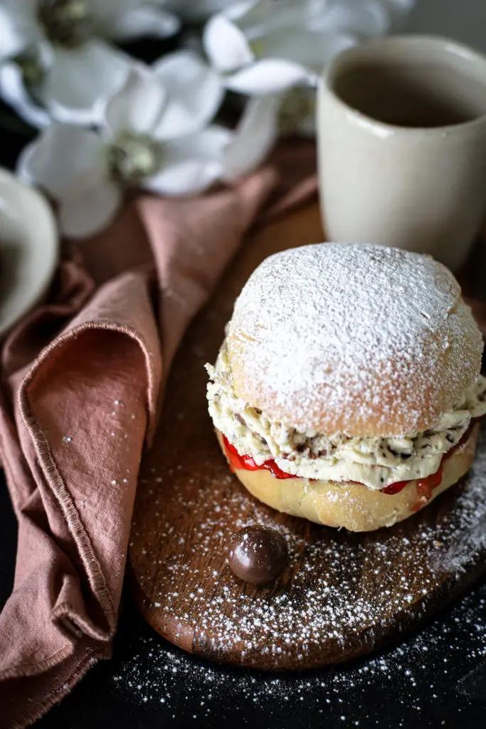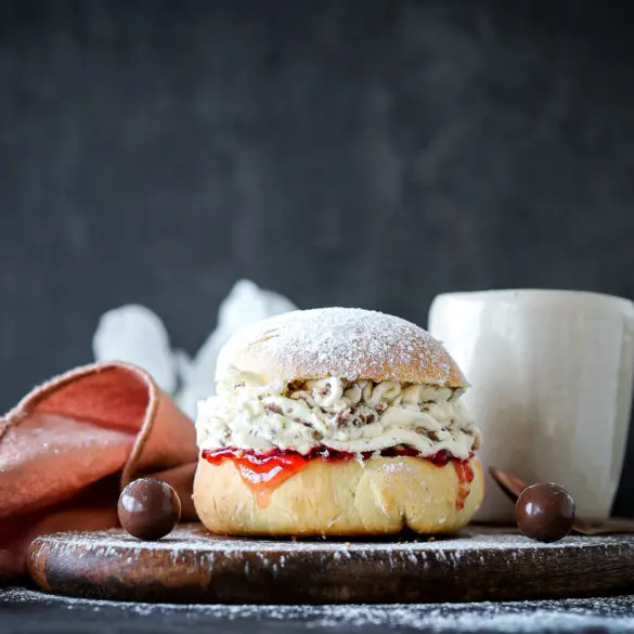 Þessa fyllingu má líka vel gera í Craquelinbollurnar ef þið viljið ekki gerbollu, en uppskrift af þeim er hér.