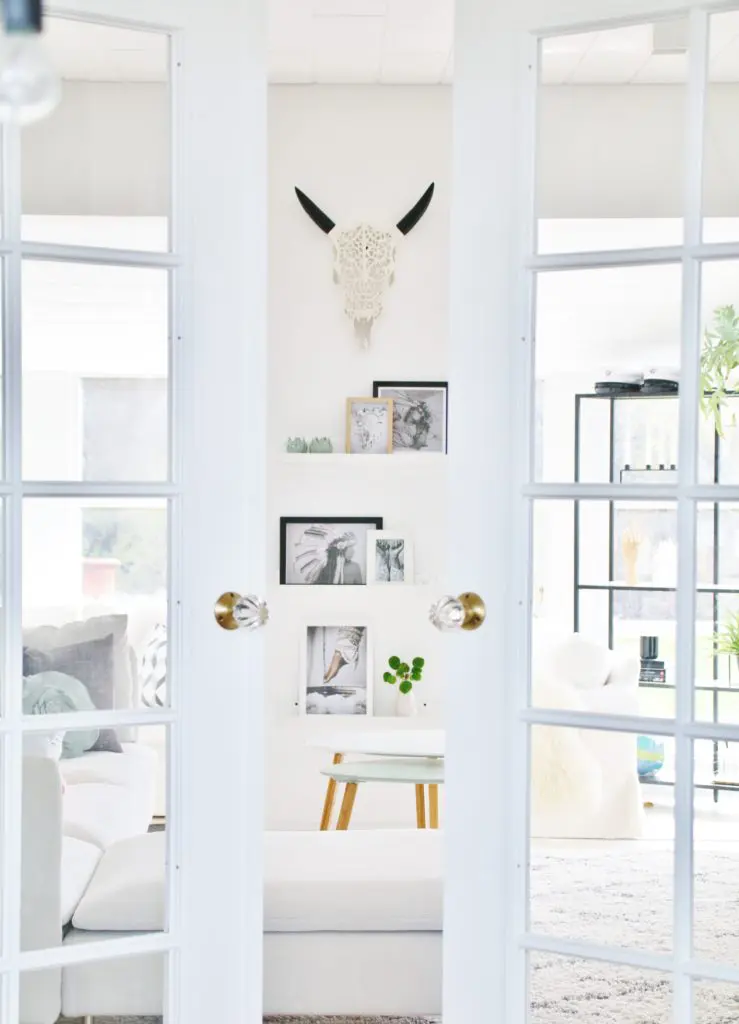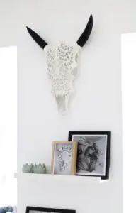 Mig var lengi búið að langa í svona skrauthauskúpu með hornum og sá fyrir mér að milda aðeins upp vegginn með einni slíkri. Það var því fullkomið að öðlast þessa fallegu hauskúpu og breytti ég veggnum í leiðinni.