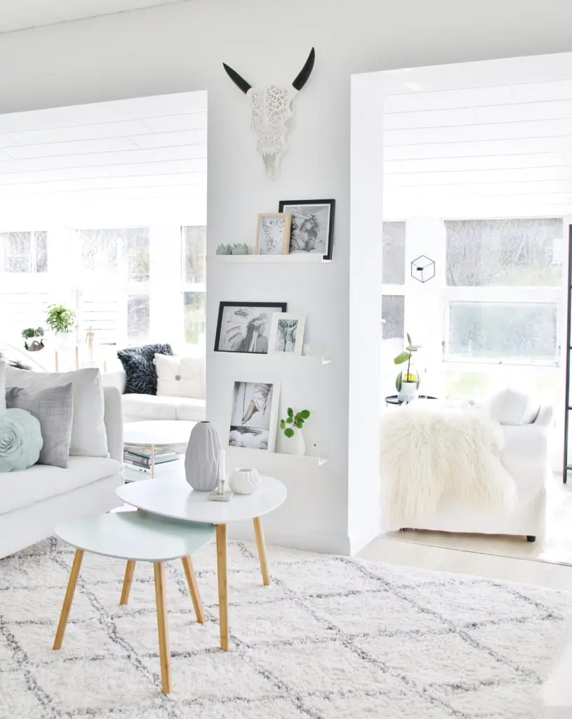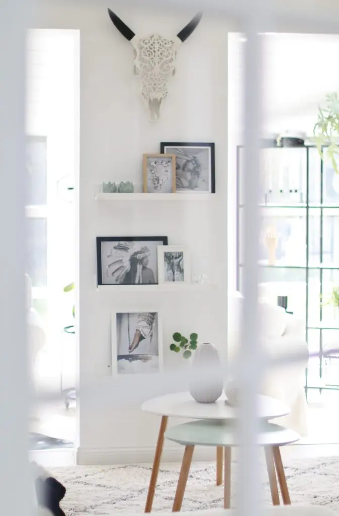 Ég hafði alltaf ætlað að laga vegginn inni í stofu hjá mér eftir að ég málaði hann aftur hvítan. En eftir að ég málaði hann hvítan passaði bara engan veginn á hann það sem var á honum svörtum.