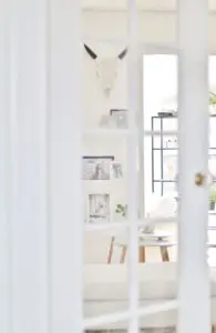 Ég er mjög ánægð með útkomuna og finnst veggurinn í stofunni og gallaríveggurinn í eldhúsinu harmónera vel saman og mynda flotta heild.