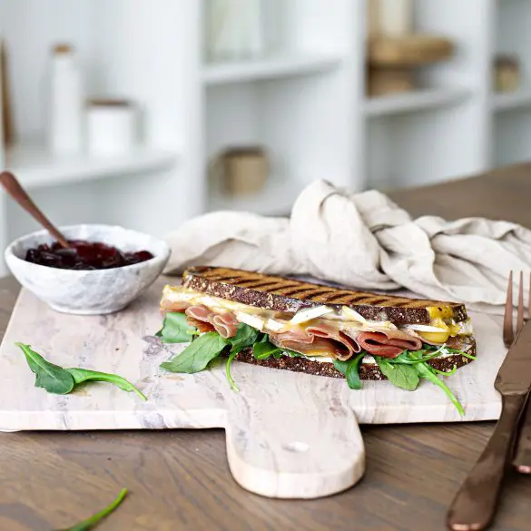 - Grillið annað hvort í samlokugrilli eða á grillpönnu þar til camambert osturinn er bráðnaður
