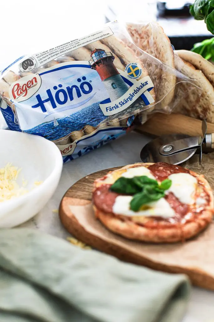 Hönö pizza sem tekur ekki nema örfáar mínútur að gera, og geta stálpuð börn jafnvel gert þetta sjálf eftir skóla sem dæmi.