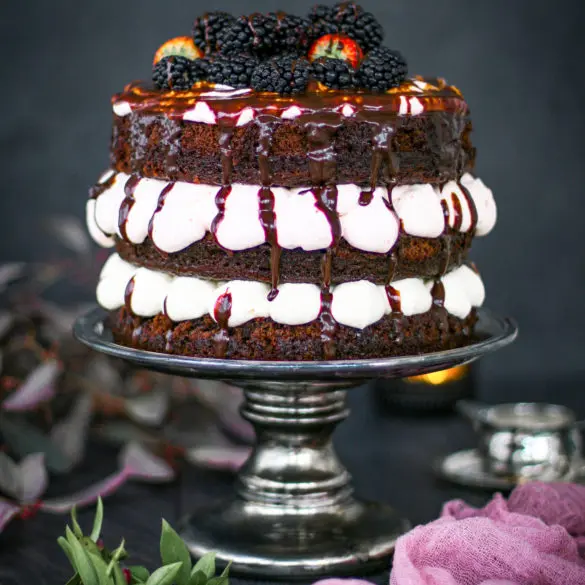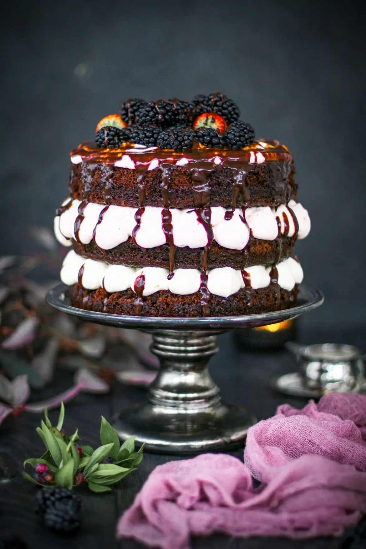 Djúpt súkkulaðibragðið í bland við mjúkan sætan rjómann og ferska jarðaberarjómann er blanda sem getur ekki klikkað, að toppa hana svo með dásamlegri súkkulaðibráð og brómberjum er algjörlega til að gera hana fullkomna.