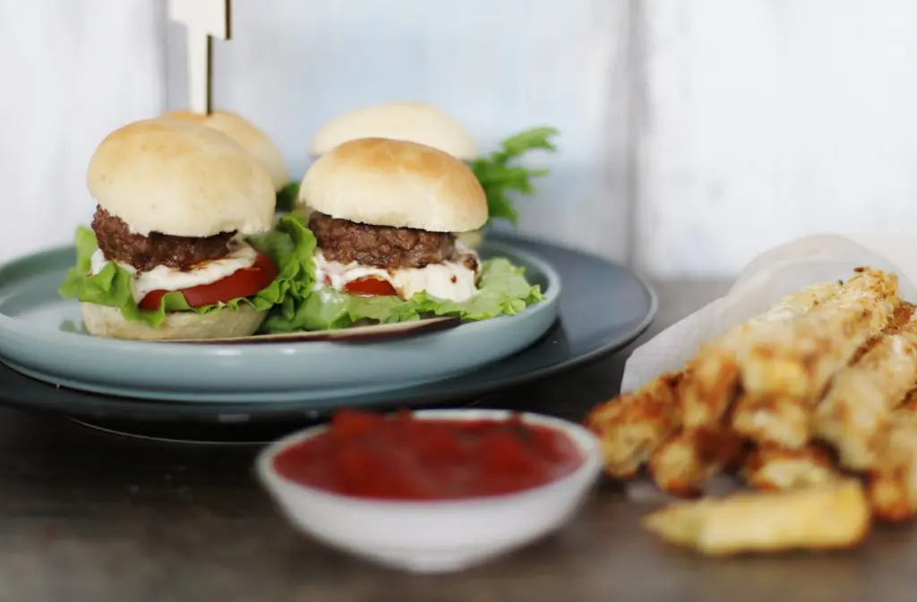 Ástæðan fyrir þessari uppröðun er að allt rúlli og sé tilbúið á sama tímanum. Brauðið og sósuna tekur 30 mínútur að gera. Á meðan það er að sjá um sig sjálft, á hellunni og í ofninum, er kjörið að gera kjötið í borgarana og franskarnar á meðan. Franskarnar þurfa 15 mínútur í ofni og þá er kjörið að elda kjötið á meðan.
