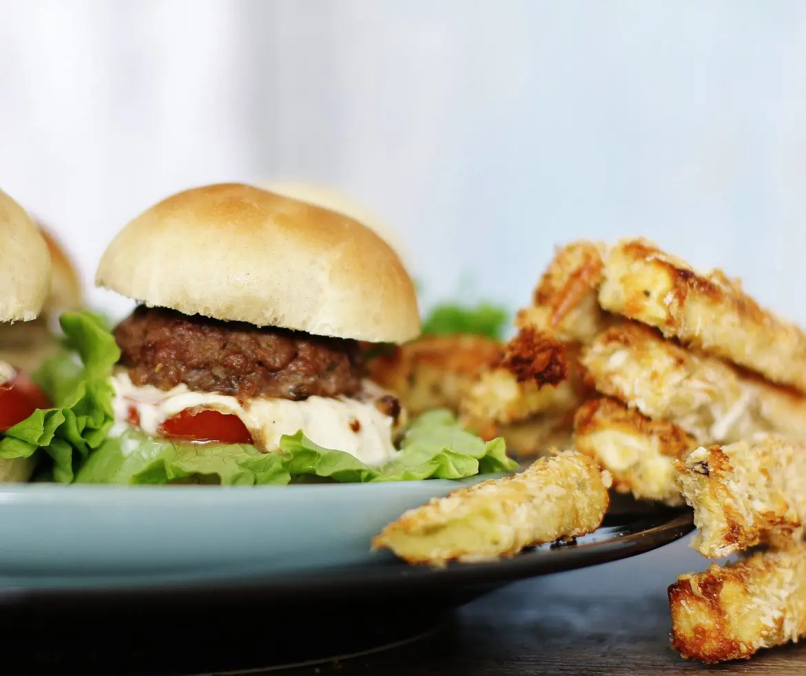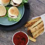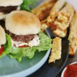 Ég ákvað að reyna að búa til einhverja skemmtilega uppskrift sem gaman og gott væri að borða og úr urðu þessir skemmtilegu smáborgarar, með dásamlegum stökkum parmesan eggaldinfrönskum, sem erfitt er að standast.