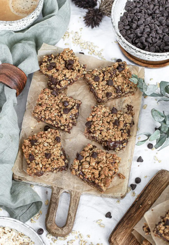 - Dreifið svo súkkulaðidropum jafnt yfir smyrjuna og stráið örlitlu grófu salti yfir (bara pínuponsu)