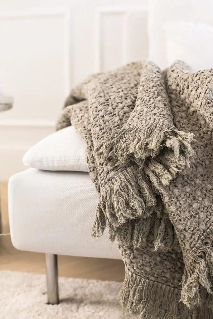 Þetta einstaklega fallega stóra værðarvoð hefur alla þessa eiginleika, en það er í senn fallegt, kósý, þykkt og hlýtt sem er dásamlegt á köldum kvöldum fyrir framan sjónvarpið.