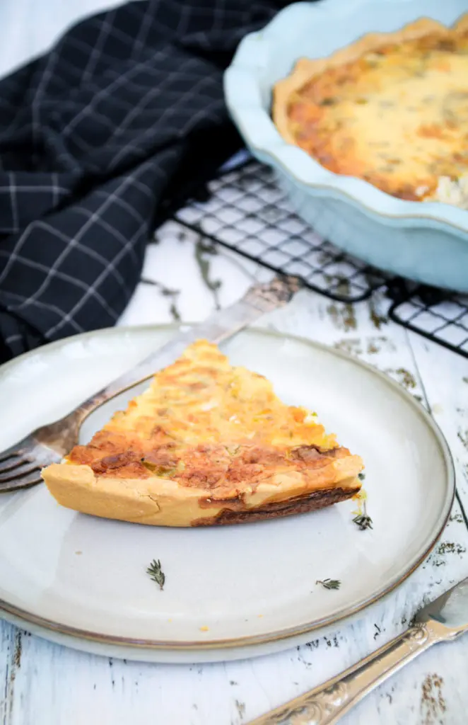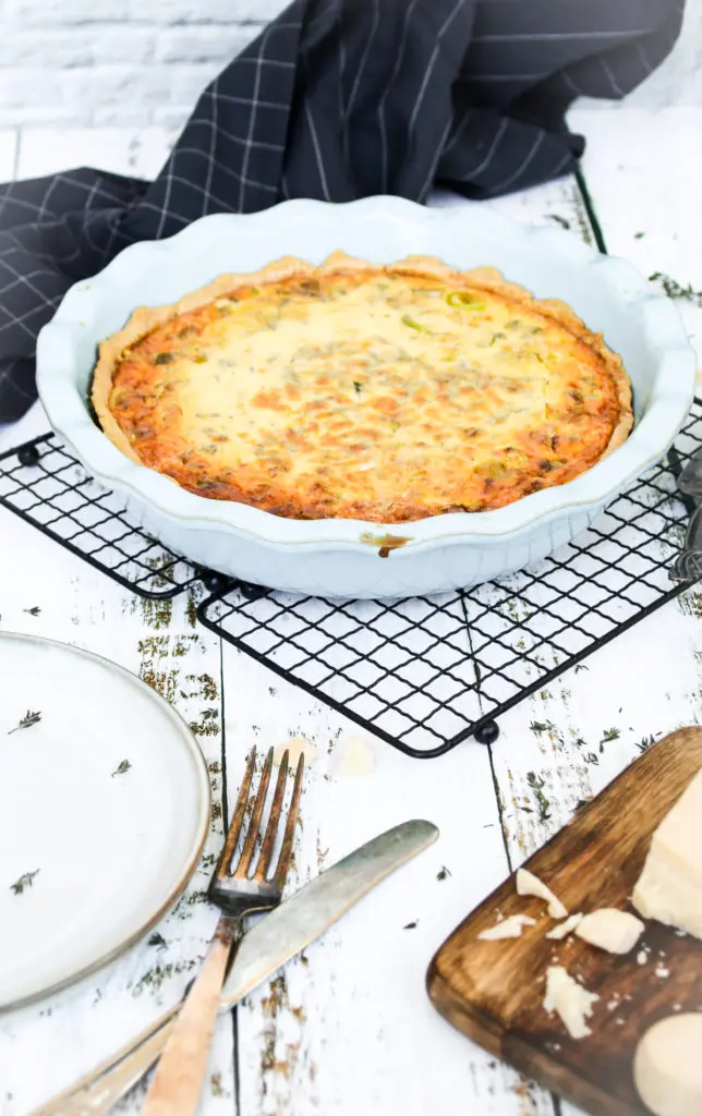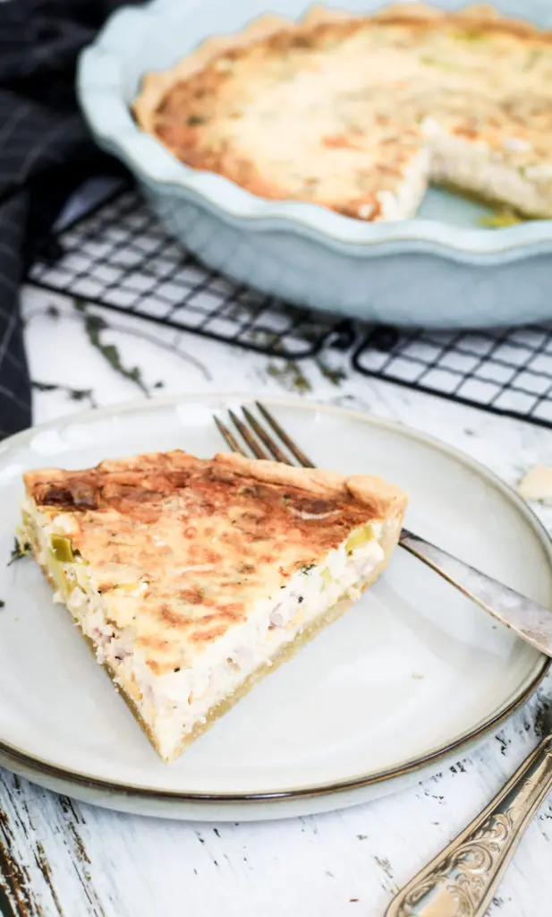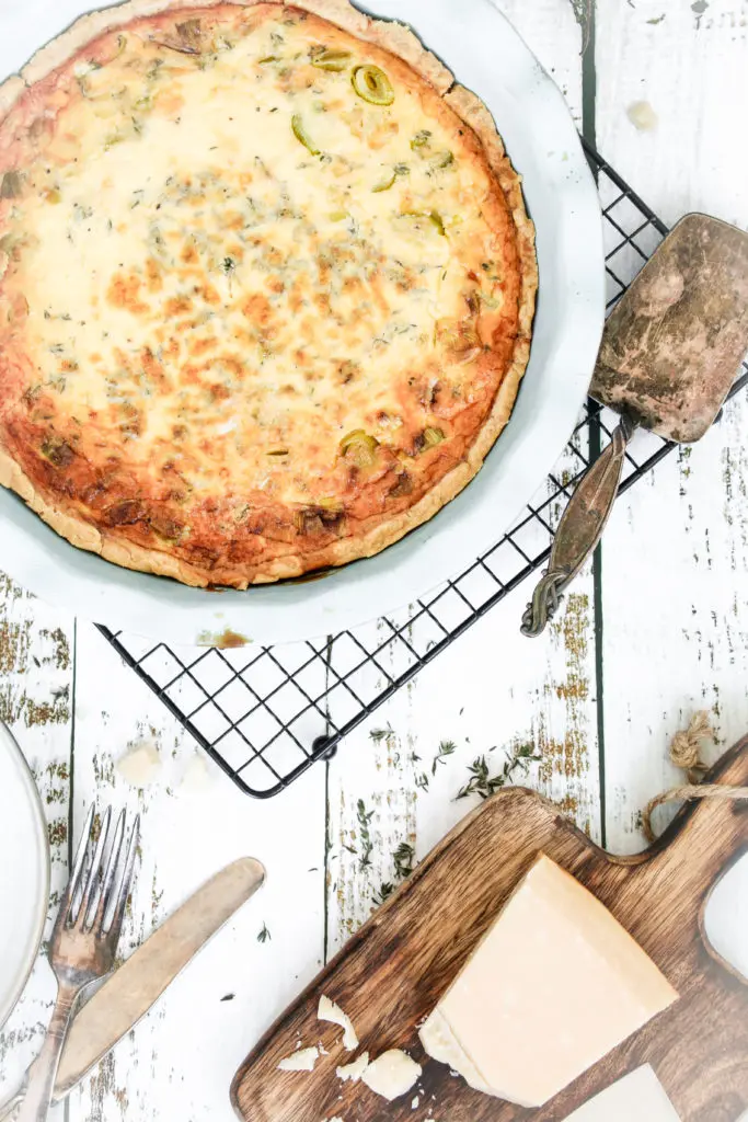 Bakan er ekki bara einföld heldur svo góð líka, stútfull af osti, skinku og púrrulauk. Hér notaðist ég við Cheddar, Havartí og parmesan. Er hægt að biðja um betri blöndu en það ?