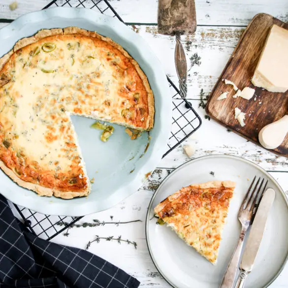 Bakan er ekki bara einföld heldur svo góð líka, stútfull af osti, skinku og púrrulauk. Hér notaðist ég við Cheddar, Havartí og parmesan. Er hægt að biðja um betri blöndu en það ?