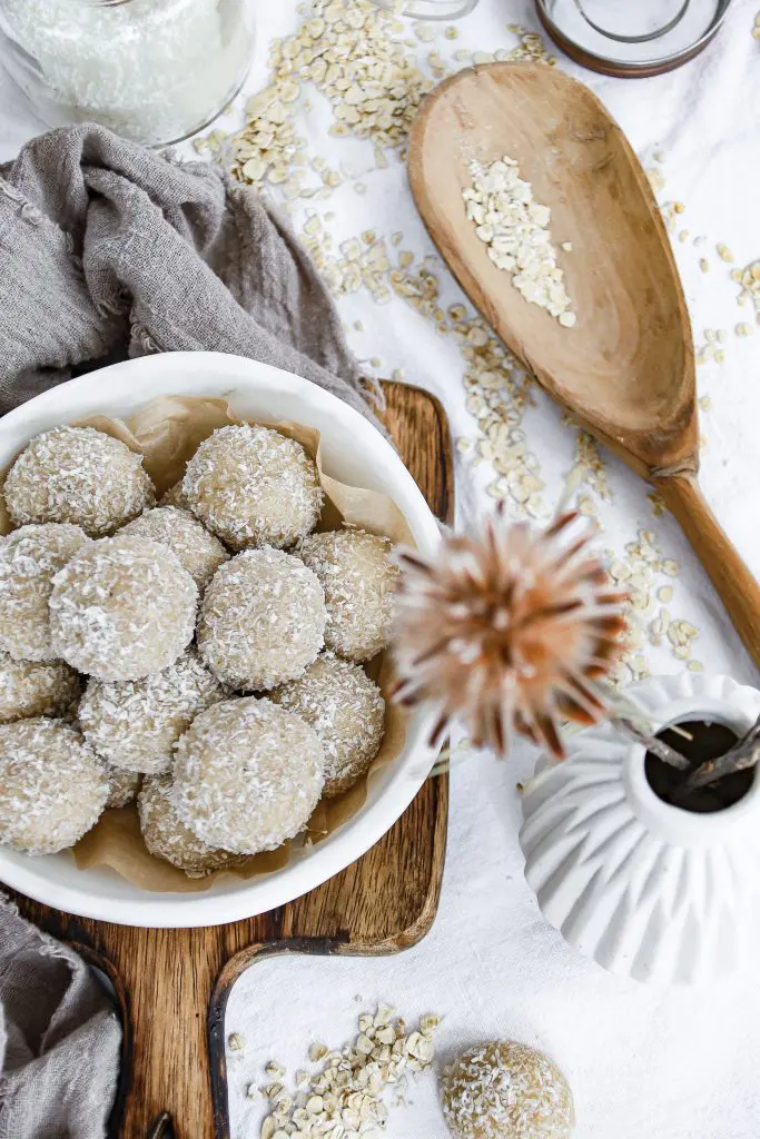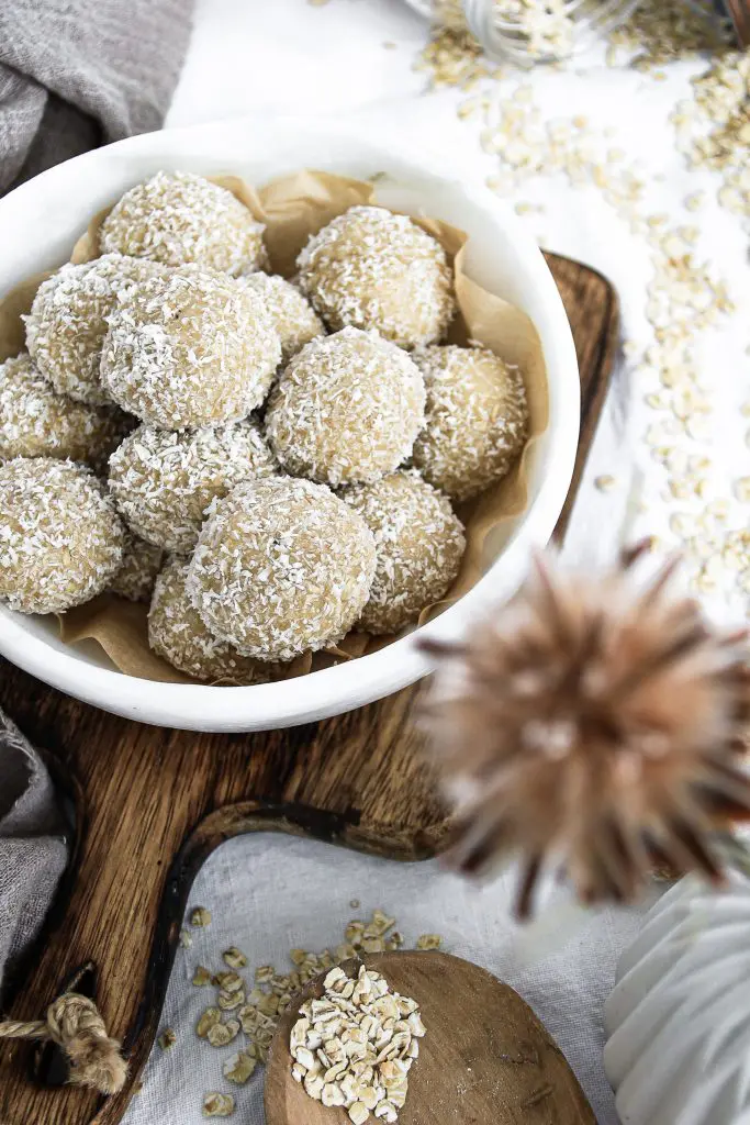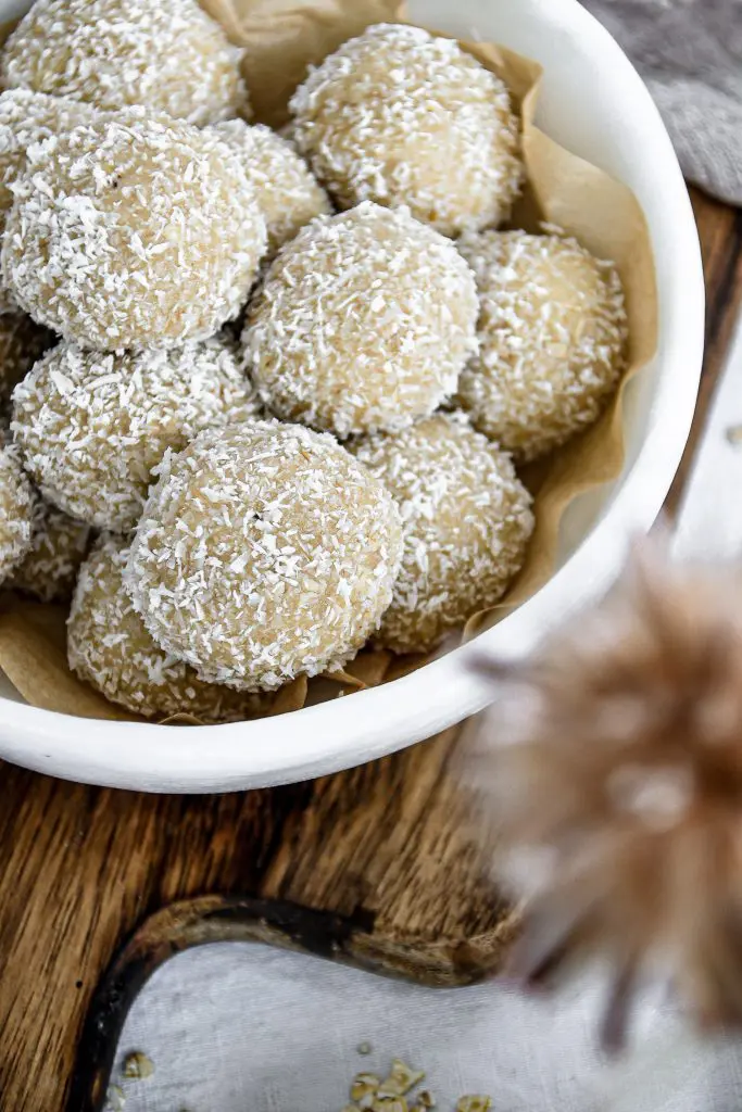 - Veltið að lokum upp úr kókósmjöli og kælið áður en borið er fram