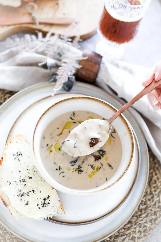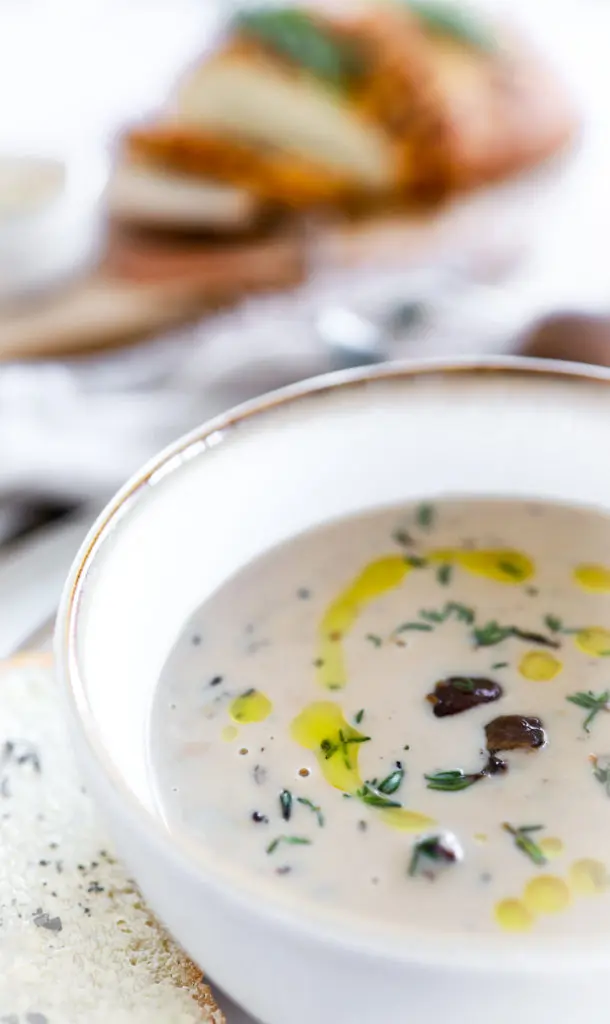 - Þegar súpan er komin í skál setjið þá nokkra dropa af Truffluolíu yfir og njótið