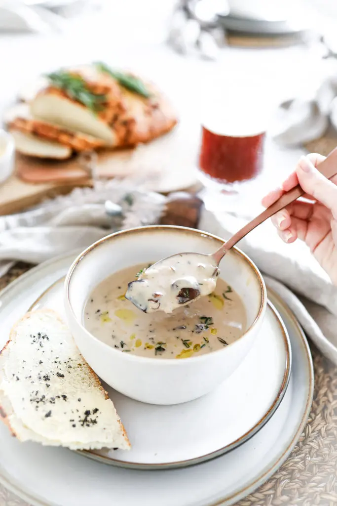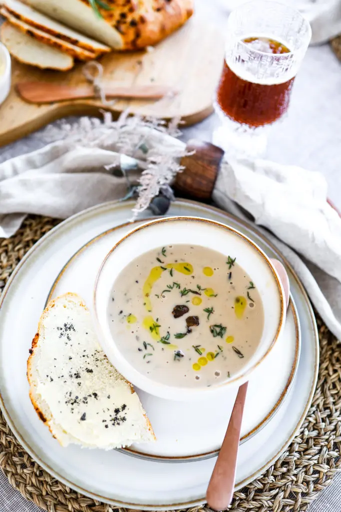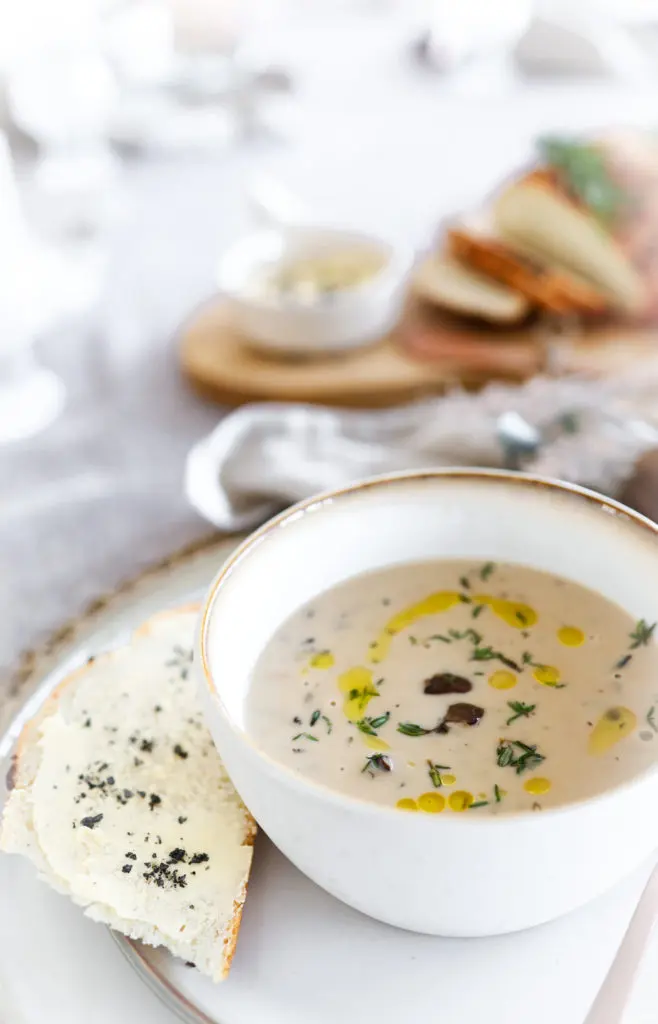 Það sem toppaði súpuna var að setja nokkra dropa af truffluolíu út á og hafa hana með nýbökuðu brauði og þeyttu öskusmjöri.